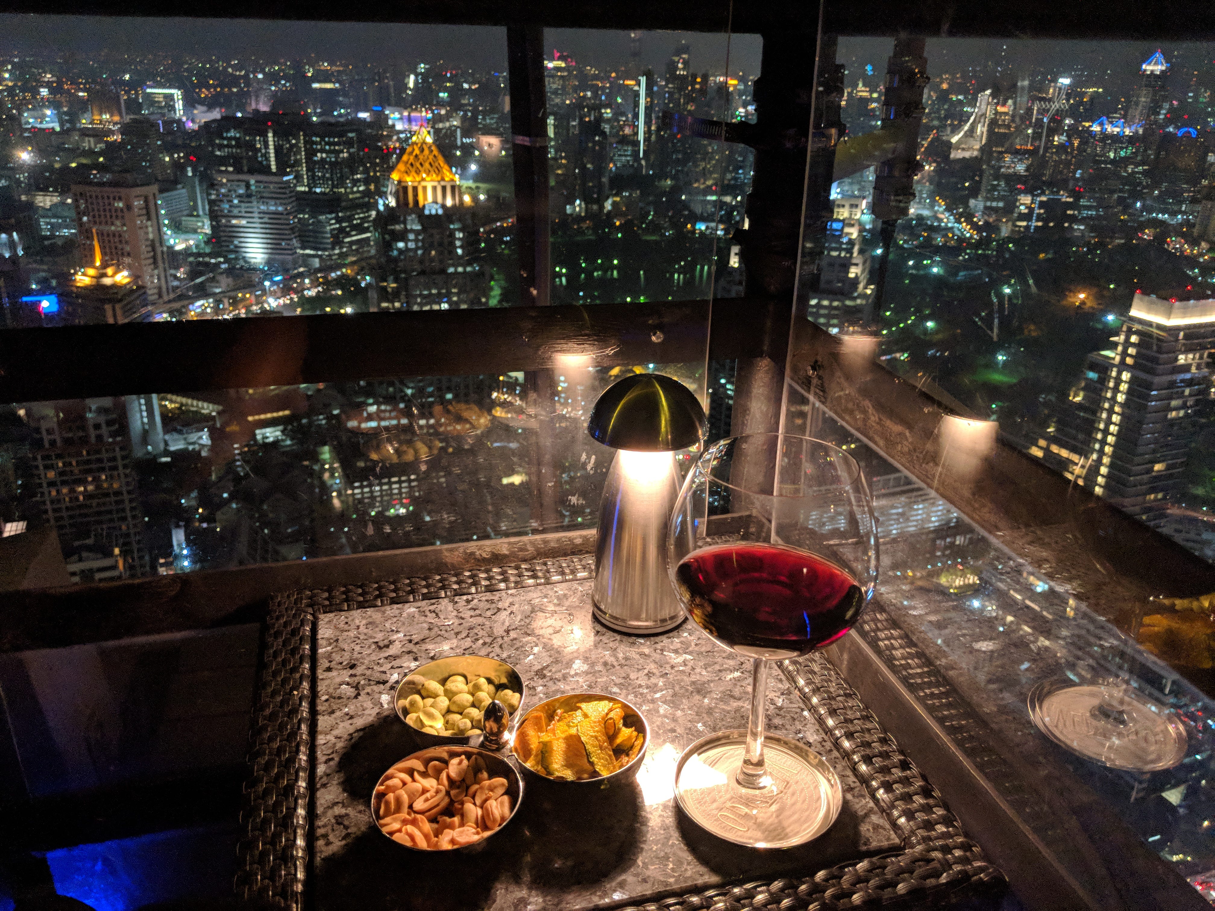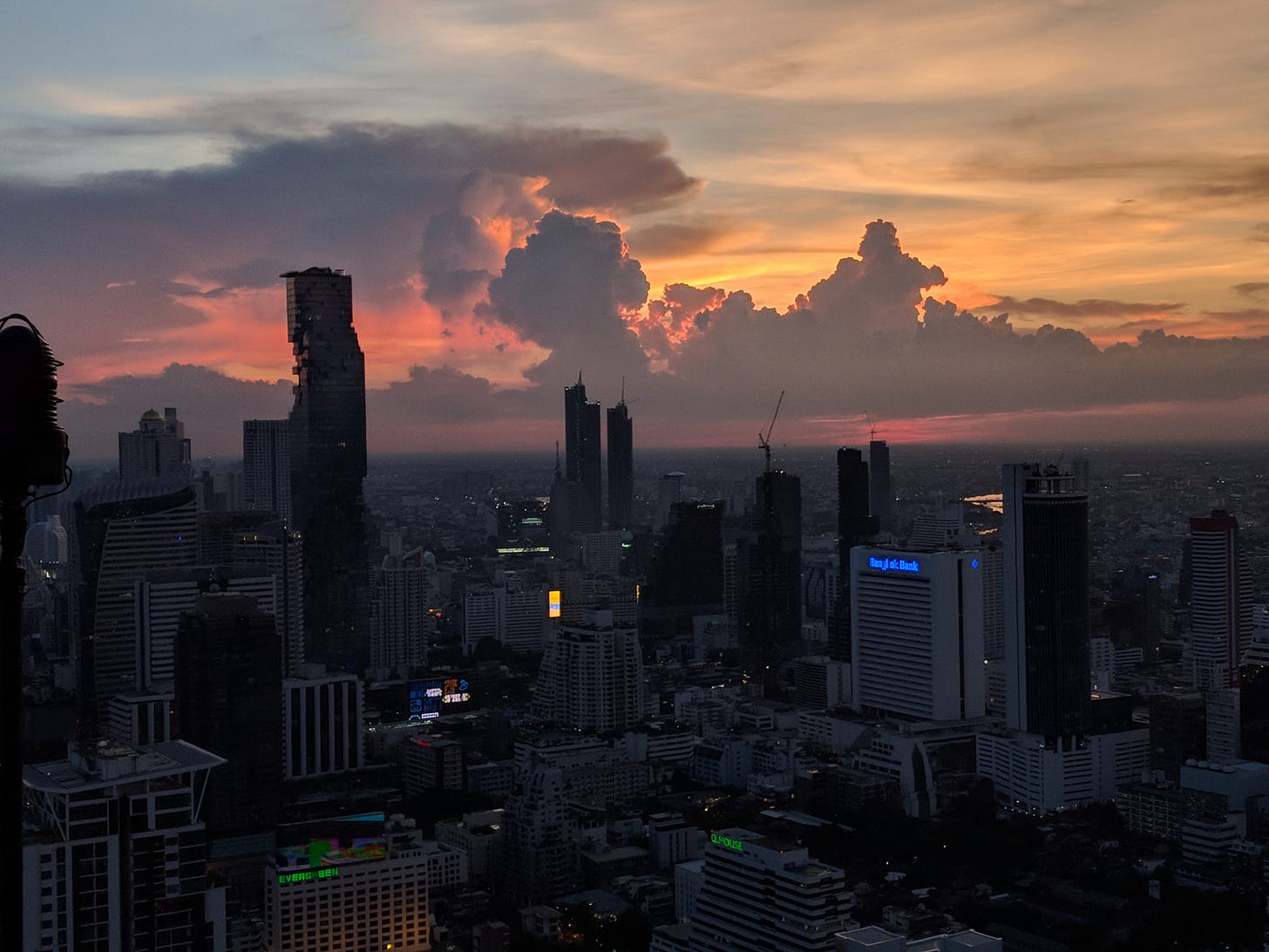 As my time in Bangkok came to an end, I decided to take myself out on a date. Not a meal somewhere to take care of my body but an intentional, romantic outing for myself with myself. It was one way I could challenge the societal belief that you need a partner or friend to go to nice places. Plus, it was an opportunity to reflect on my time in Bangkok while doing one of my favorite things, watching the sunset. My cousin recommended that I go to this rooftop bar that offers a beautiful view of the sunset, Banyan Tree Bangkok.